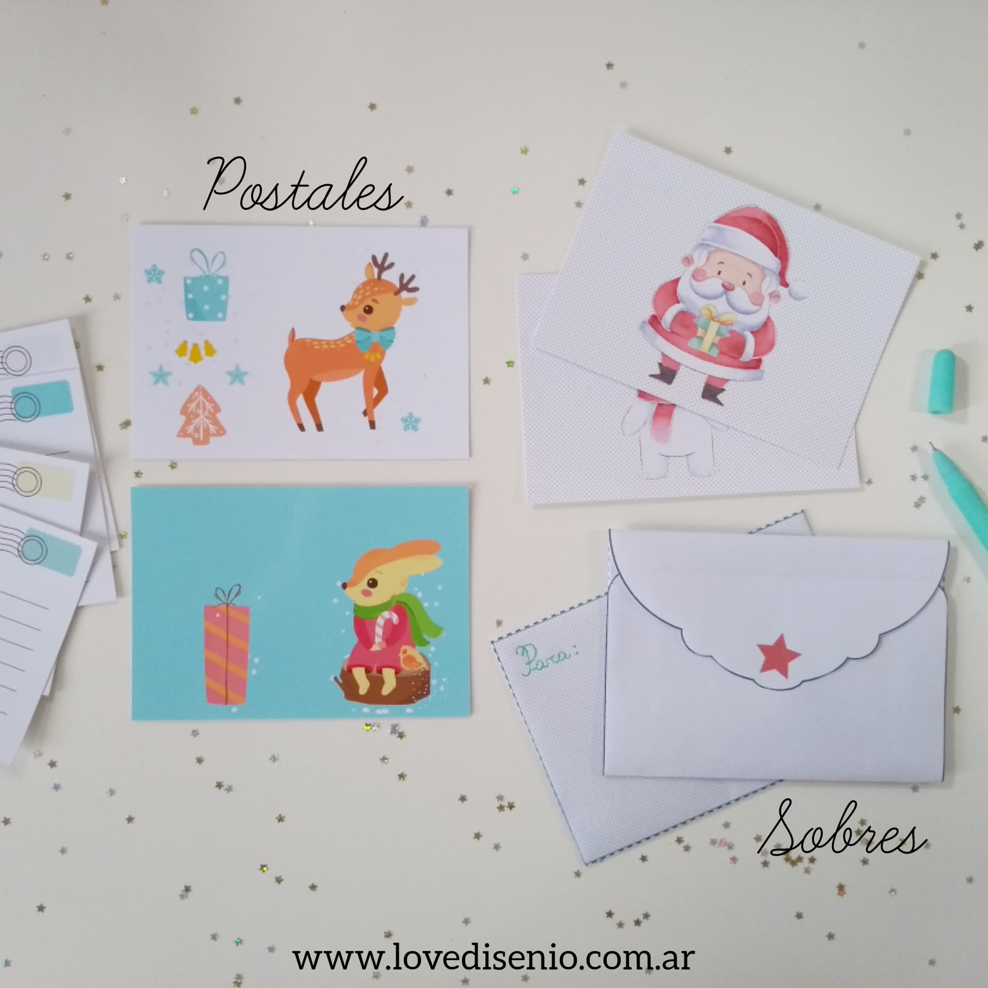*Cartas a papá Noel, postales y sobres, totalmente editables con varios diseños.